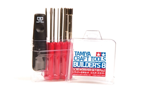 This is a set of 8 screwdrivers of assorted types and sizes. Set consists of three sizes of (+) screwdrivers, two (-) screwdrivers, two nut drivers and a hex wrench, plus a detachable grip. Packaged in a handy plastic carrying case.