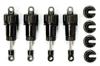 – These components can be used in place of kit-standard friction dampers, giving more efficient shock absorption and the ability to fine-tune setup using different (separately sold) viscosities of oil.