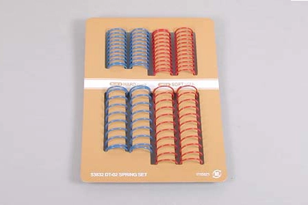 – Two each of hard (blue) and soft (red) springs are included for front and rear.