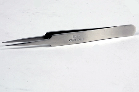 These precision made stainless steel tweezers are ideal for handling small, delicate plastic model parts. An angled type which can access hard to reach areas and a straight type which directly transmits finger movements to the tip for optimum control are available.