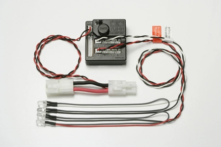 This LED light unit can be used to light up as many as 16 individual LED lights(8 sets). Perfect foradding LED lights to your R/C models, improving realism and amazing your friends. Unitcomes with 2 red and 2 white colored LED lights.