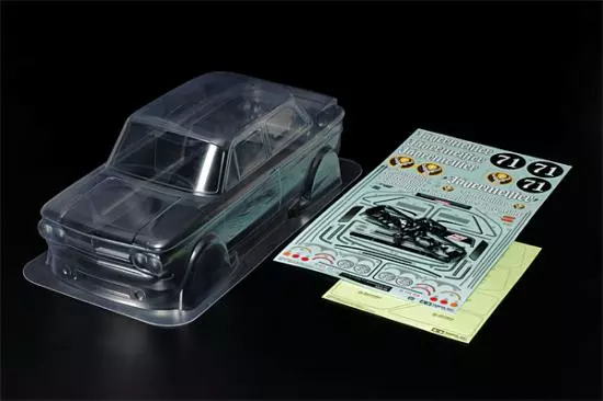 This is a complete spare body parts set of the NSU TT Jägermeister. The set includes the team livery sticker set, window masking tape, and plastic side mirrors.